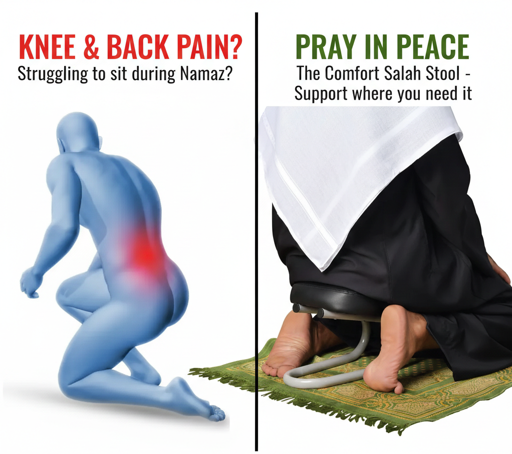 Kya aap ko namaz ke dauran ghutno ya kamar mein takleef hoti hai? Hamari Comfort Salah Stool aap ke jism ke pressure ko kam kar ke ibadat ko pur-sakoon banati hai.